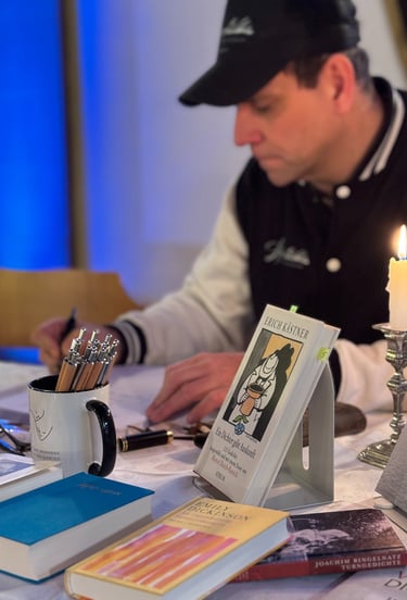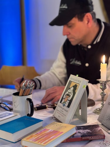 Am 14. Dezember 2025 hatten Menschen im Logenhaus Dessau beim Worldwide Candle Lighting Day der Kinder gedacht, die viel zu früh von uns gegangen sind. Inmitten von Gedichtbänden von Kästner, Kaléko, Hesse, Dickinson, Ringelnatz und Rilke sowie Kinderbuchklassikern wie Momo oder Die unendliche Geschichte lud Richter zu einer „lyrischen Ecke“ ein. Jeder Mensch, der wollte, durfte ein Impulswort aus einem Zylinderhut ziehen und daraus Haikus, Senryūs oder Elfchen gestalten – kleine Verdichtungen, die Trauer in Kreativität fließen ließen, offen, frei und voller Leichtigkeit.