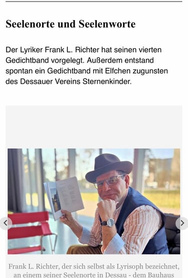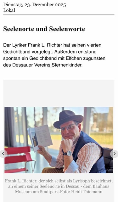Im Bauhausmuseum Dessau traf Frank L. Richter die Journalistin Heidi Thiemann von der Mitteldeutschen Zeitung zu einem intensiven, rund 90-minütigen Interview. In inspirierender Umgebung ging es um Lyrik, gesellschaftliches Engagement und kulturelle Perspektiven.